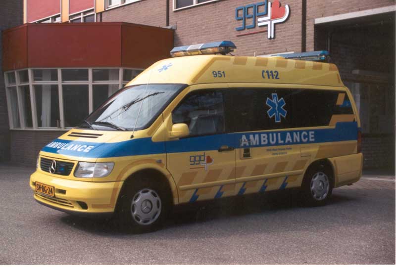 Fin 2004, la première Mercedes-ambulance de type Visser 4 en service aux Pays-Bas.